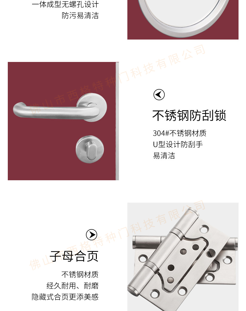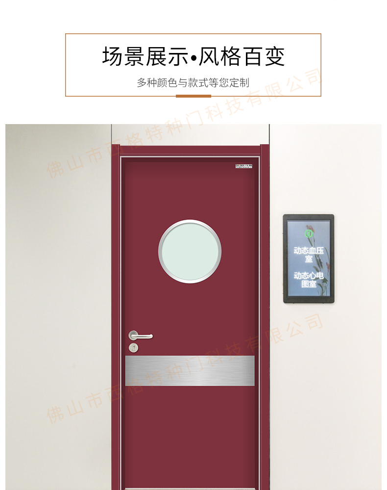 產品簡介:chnsige西格特種門,專業生產醫院門,醫院診室門,醫院辦公室門,醫院衛生間門,木質醫院門,鋼質醫院門,多鐘款式、顏色,尺寸可定制。