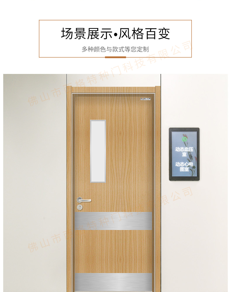 產品簡介:chnsige西格特種門,專業生產醫院門,醫院診室門,醫院辦公室門,醫院衛生間門,木質醫院門,鋼質醫院門,多鐘款式、顏色,尺寸可定制。